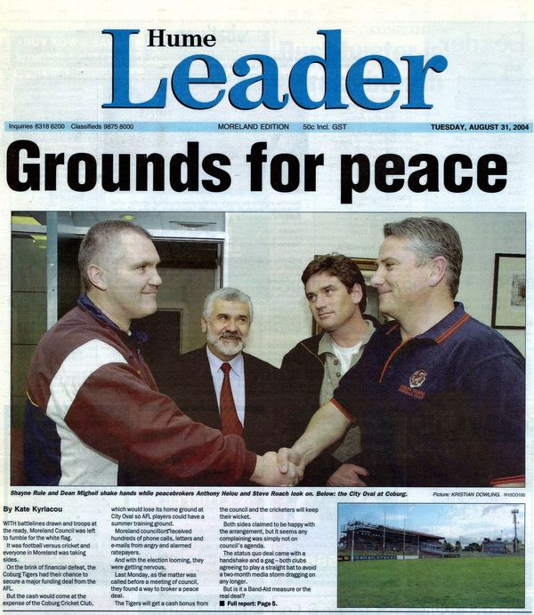 When Anthony Helou was Mayor he successfully brought a hand shake and amicable deal (which many tried to do and failed ) to the table, after it was sadly, cricket versus football. A fight was on for the sporting clubs as both wanted to use Coburg City Oval. It became a nightmare for Moreland Council.